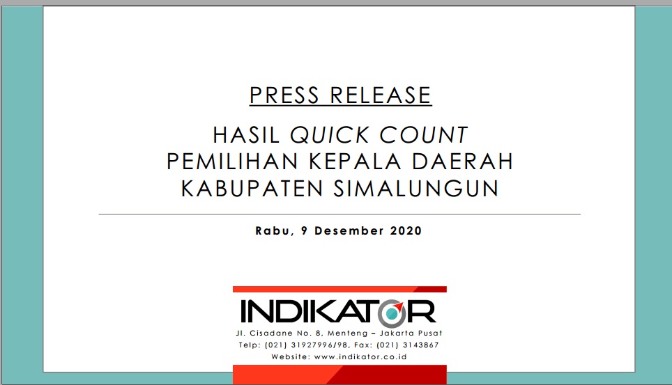 Berikut ini terlampir Press Release Hasil Quick Count Pilkada Kabupaten Simalungun pada 09 Desember 2020.